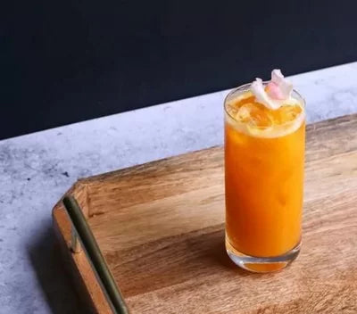 Garnish: Dried rose petals, dehydrated orange slice ,