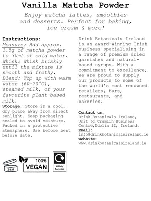 By choosing Drink Botanicals Ireland’s Ceremonial Grade Vanilla Matcha Powder, you’re ensuring a smooth, vibrant, and delightful matcha experience every time.