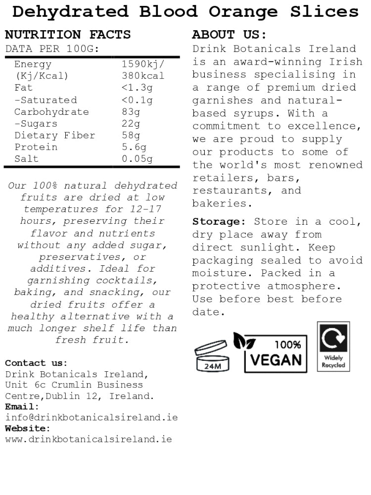 Dried blood orange slices are exceptionally sweet and add a zesty, aromatic flavour to your gin and tonic or cocktail-based drink.