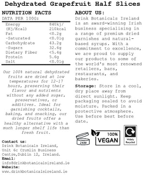 Grapefruit shares a similar taste and acidity with oranges but with a more tart and bitter flavour. These dried slices have a bold and beautiful appearance thanks to grapefruit’s popular pink flesh and orange skin making these slices the perfect decoration!