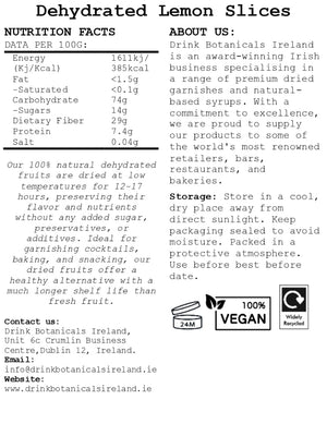Overall, Drink Botanicals Ireland’s dehydrated lemon slices are a versatile ingredient with a long shelf life and a variety of uses in both sweet and savory dishes.