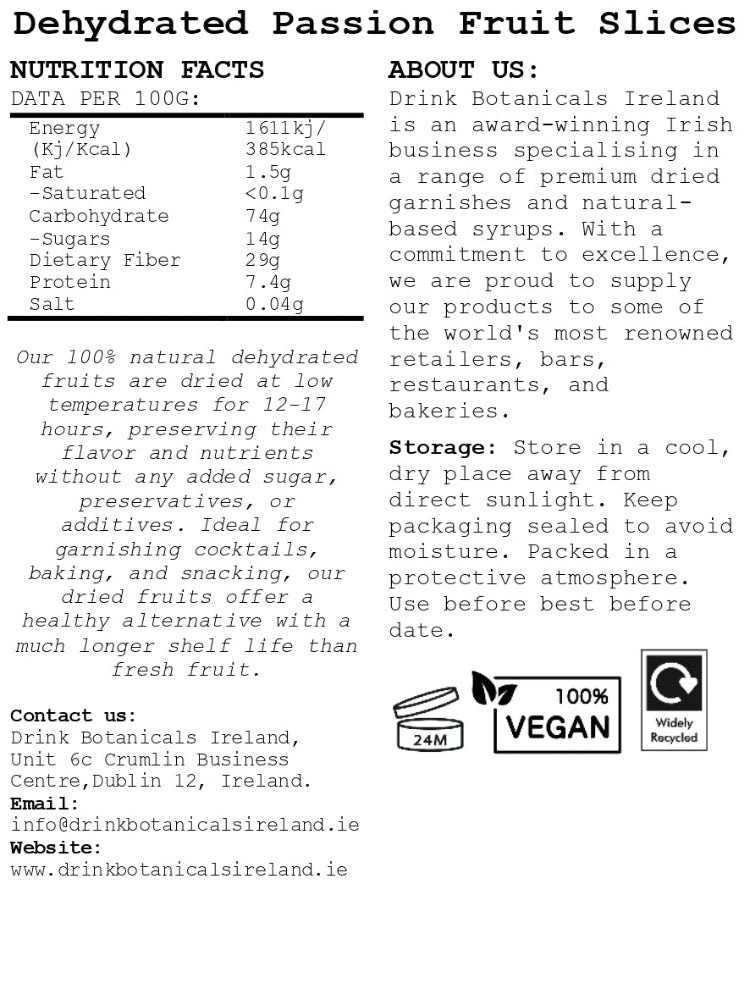 For cocktails: Garnish your cocktail with a slice of our dehydrated passion fruit.