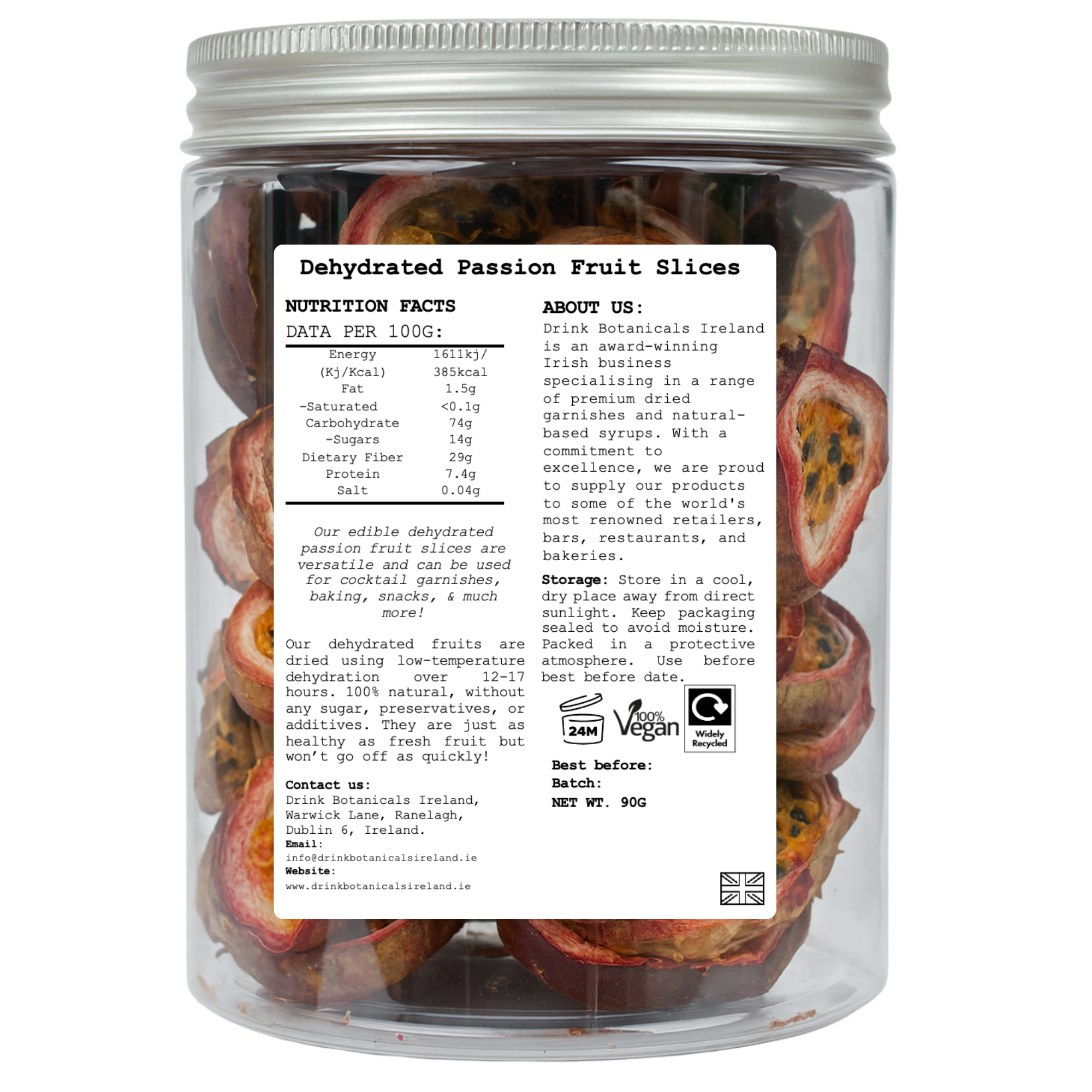 For cocktails: Garnish your cocktail with a slice of our dehydrated passion fruit.