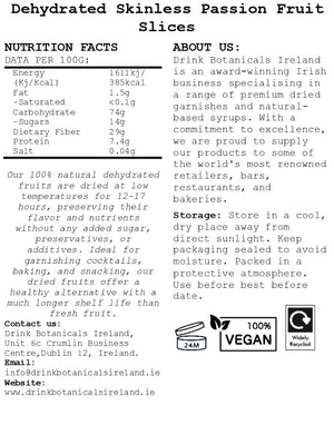 Our Skinless Passion Fruit Slices are 100% natural. These are simply dried passion fruit slices with no sweeteners or preservatives. With their natural sweet and tart taste, they make a perfect snack. Passion fruit is an excellent source of fibre, antioxidants, and vitamins.