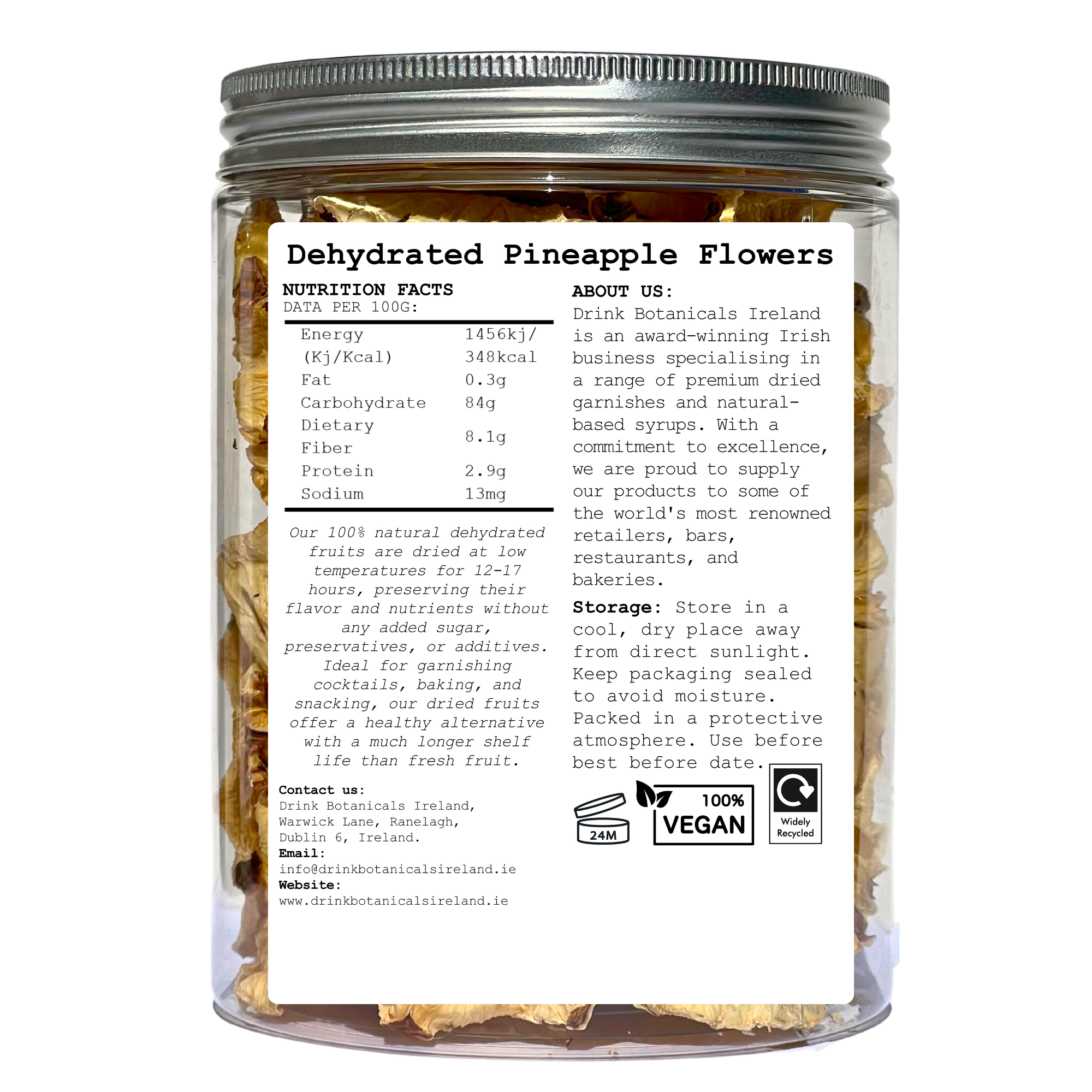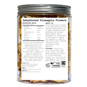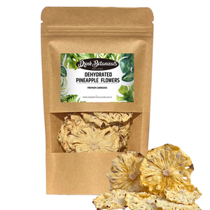 Drink Botanicals Irelands dehydrated or dried pineapple flowers are made by drying out the pineapple flowers by removing most of the moisture. These flowers are commonly used in various culinary applications, and they offer several benefits.
