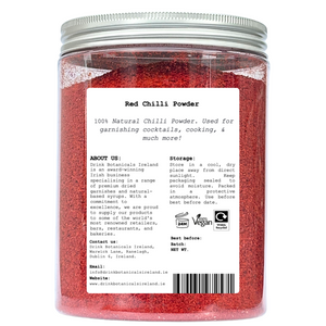 Ignite your taste buds and elevate your creations with our premium Dried Red Chilli Powder, made from 100% natural dried red chillies. At Drink Botanicals Ireland, we bring you pure, finely ground chilli powder with a bold kick – ideal for both the kitchen and the cocktail bar.