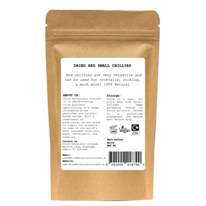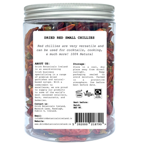 Add bold flavour, vibrant colour, and fiery spice to your creations with our Dried Red Small Chilli Peppers – a must-have pantry essential for foodies, mixologists, and home cooks alike. At Drink Botanicals Ireland, we bring you 100% natural dried red chillies that pack a punch in both taste and visual appeal.
