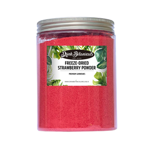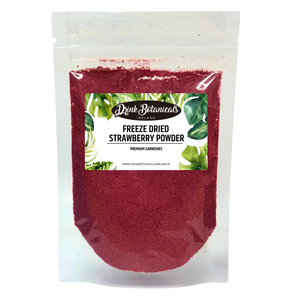 Add a fruity pink burst to your cocktail, gin and tonics & homemade drinks with freeze-dried strawberry powder. Our freeze-dried strawberry powder is also ideal for snacking, desserts, yoghurt, sorbets, cakes, smoothies, tea, and baking.