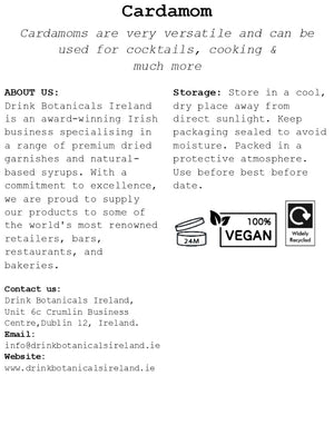 Drink Botanicals Ireland is your premier supplier of the finest quality green cardamom pods. Packaged in eco-friendly kraft pouches and boasting a 2-year shelf life, our green cardamom pods are a must-have for any kitchen. This guide will help you understand the benefits, uses, and storage tips for green cardamom pods to ensure you get the most out of this aromatic spice.