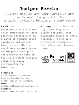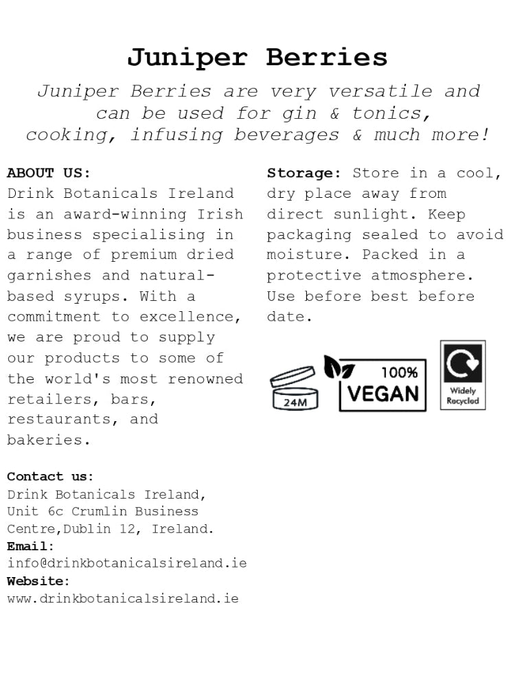 Description: Where do we start with Juniper Berries? They’re one of our most popular ingredients and it could very well have something to do with the fact that these small berries make one of the most popular spirits in the world! It’s always gin o’clock when Juniper Berries are involved… These favoured berries have a tart, sharp taste, and a piney flavour with a hint of citrus.