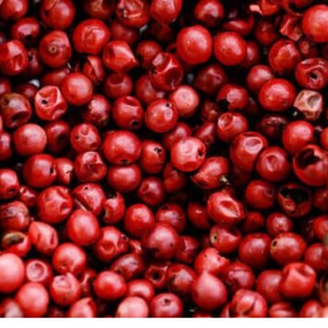Pink peppercorns are small, round, and pinkish-red in colour, with a fruity, slightly sweet taste and a hint of spice. They can be used in various dishes, such as salads, sauces, marinades, seafood, and even desserts. They are also often used as a garnish for dishes due to their vibrant colour.