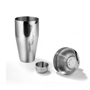 Drink Botanicals Irelands 3-piece cobbler cocktail shaker is a type of cocktail shaker that consists of three parts: a tin, a strainer, and a cap. The tin is the main body of the shaker and is where the ingredients are combined and mixed together. The strainer is built into the top of the tin and is used to strain out any ice or other solid ingredients that may have been added to the drink. The cap fits on top of the strainer and is used to seal the shaker while shaking the cocktail.