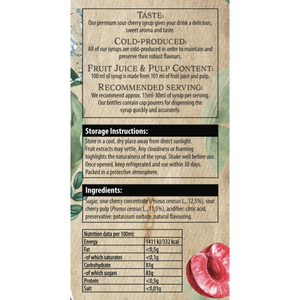 - Cold Produced: Our sour cherry syrup is cold produced to maintain its robust flavours and mineral content.