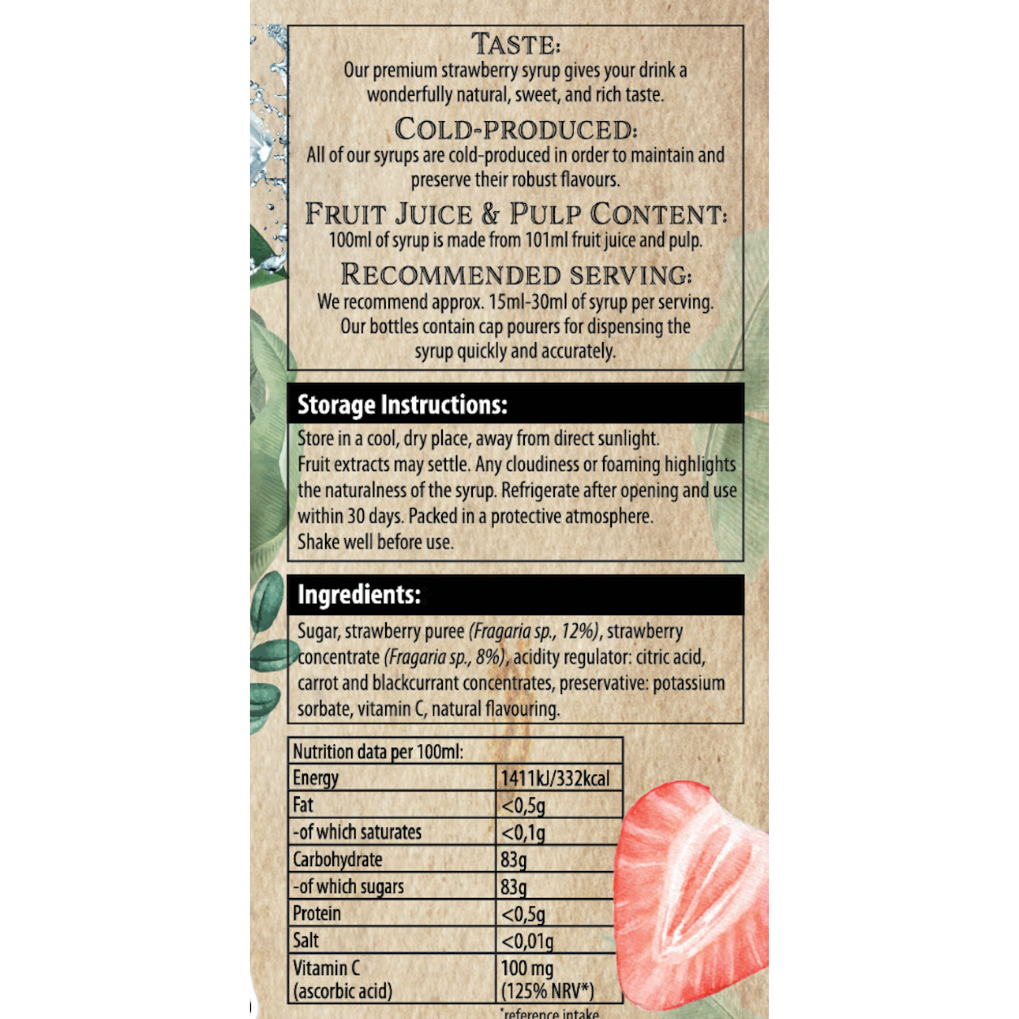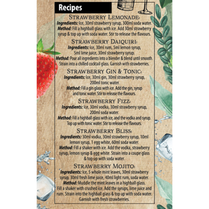 Selection of Recipes: Every bottle of strawberry syrup contains a selection of six recipes compiled by international mixologists.