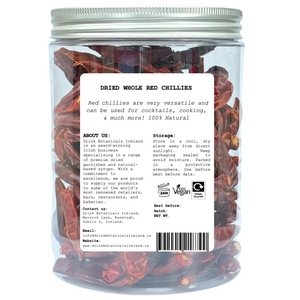 Discover the versatility of whole-dried red chillies from Drink Botanicals Ireland. Add a fiery kick to your culinary creations and explore the spice-infused world of creative cocktails, flavorful infusions, and delightful mocktails. Elevate your drinking experience with Drink Botanicals Ireland’s premium selection of whole dried red chillies.